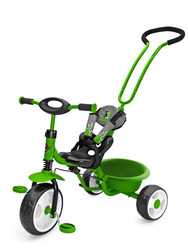 Solidny i bezpieczny rowerek o nowoczesnej stylistyce. Wygodne siedzisko oraz miękkie oparcie zapewniają maksymalny komfort jazdy. Pięciopunktowe pasy utrzymują stabilność dziecka w siedzisku. Rowerek posiada prosty mechanizm działający na zasadzie sprzęgła. Po odłączeniu napędu pedałki mogą obracać się niezależne od ruchu przedniego koła, co przydatne jest podczas prowadzenia rowerka przez rodzica (ruch pedałów nie jest wymuszany przez ruch koła!).