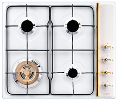 Płyta gazowa wykończenia w kolorze złotym, sterowanie boczne, czarne ruszta
